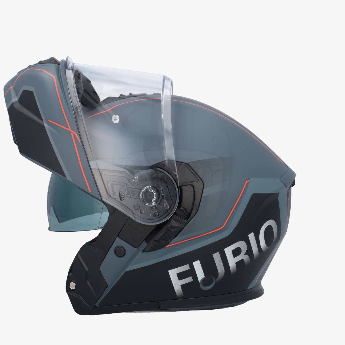 De VITO Furio is een sportief ogende en betaalbare systeemhelm! Deze helm is gemaakt van het materiaal polycarbonaat, en wordt gemaakt in één maat buitenschaal. Deze helm weegt 1570 gram en is verkrijgbaar in de maten S t/m XXL. Op de helm zit een anti-kras vizier welk tevens Pinlock voorbereid is. De pinlock voorkomt dat het vizier beslaat en daardoor kan je vizier gewoon gesloten blijven, ook tijdens koude en vochtige dagen. Ook beschikt deze helm over een zonnevizier, welke gemakkelijk aan de linkerkant te bedienen is. Dankzij de gemakkelijk te openen kinbak kan je altijd snel wat frisse lucht pakken voor een stoplicht of in de stad. Deze helm is voorzien van een micrometrische sluiting, deze ratel sluiting klikt gemakkelijk vast en erg betrouwbaar. Op de helm zitten diverse ventilatiekanalen wat er voor zorgt dat er frisse lucht de helm in komt. De oorpads van deze helm zijn uitneembaar en wasbaar.